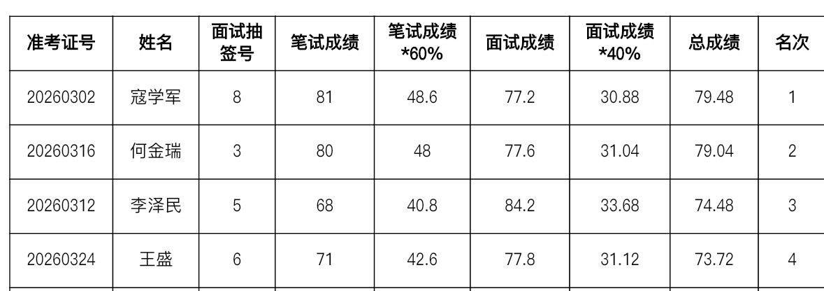 拟录用人员名单
